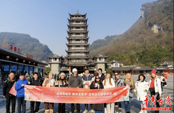 近日,由张家界市文化旅游广电体育局、携程集团联合主办的“仙境张家界 峰迷全世界”全球旅行达人游张家界活动举办。来自英国、韩国、日本、西班牙、澳大利亚、加拿大、白俄罗斯、南非、哥伦比亚、尼泊尔、乌克兰以及中国香港等12个国家和地区的11组全球旅行达人带领全球游客,观奇峰、赏秀水、看演艺、品美食,种草张家界春节新玩法。
