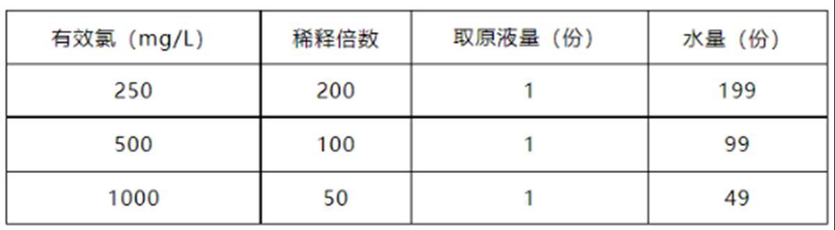 消毒剂一般具有很强的刺激性,浓度过高可能会对人体皮肤和呼吸道等造成刺激,甚至有引发器官、组织受损的风险。消毒剂浓度过低则起不到消毒作用。使用前要仔细阅读标签说明书,了解有效成分及含量、适用范围和使用方法、产品有效期等。需要稀释使用的,按照比例进行稀释后使用。以84消毒液(原液浓度为5%时)为例,给一个稀释使用表。