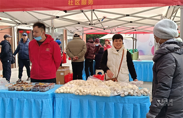 舞台下,年货市集区同样热闹非凡。大成路美食商户展台上,各式特惠售卖的招牌美食摆满了桌面,中百仓储、盒马鲜生展台,日用百货、糖果糕点、加工鲜食、果蔬礼盒等各类年货商品质优价廉,商户、工作人员热情地介绍福利优惠,提供试吃品尝,吸引众多居民驻足选购,现场消费热情高涨。