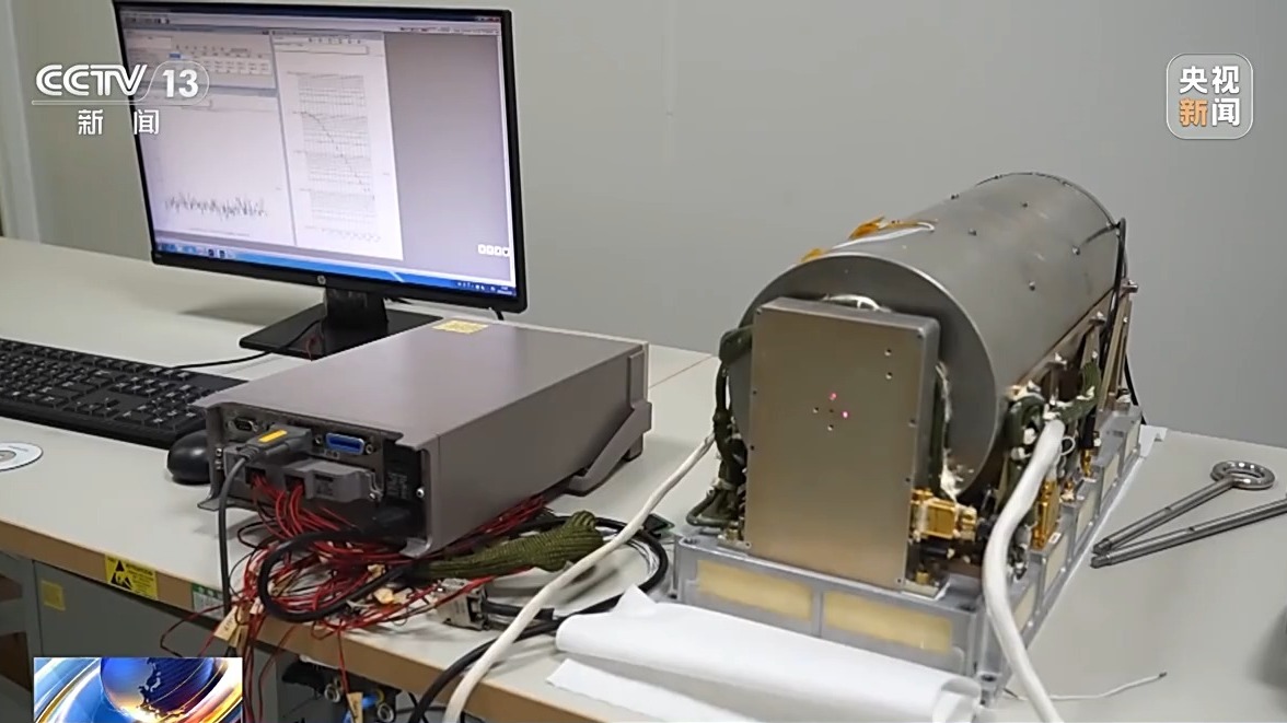 中国科学院上海天文台正高级工程师 谢永辉:我们最早研制的是23公斤级的星载氢原子钟,早期配置在北斗系统上面,已经连续运行了接近10年。后期我们也在研制更小型化的13公斤级的星载氢原子钟,就是这台,它的性能指标基本保持一致,然后重量大幅压缩,然后配备在中轨卫星上面就扩展它的应用范畴。在未来下一代北斗导航上面,我们将会大规模使用。