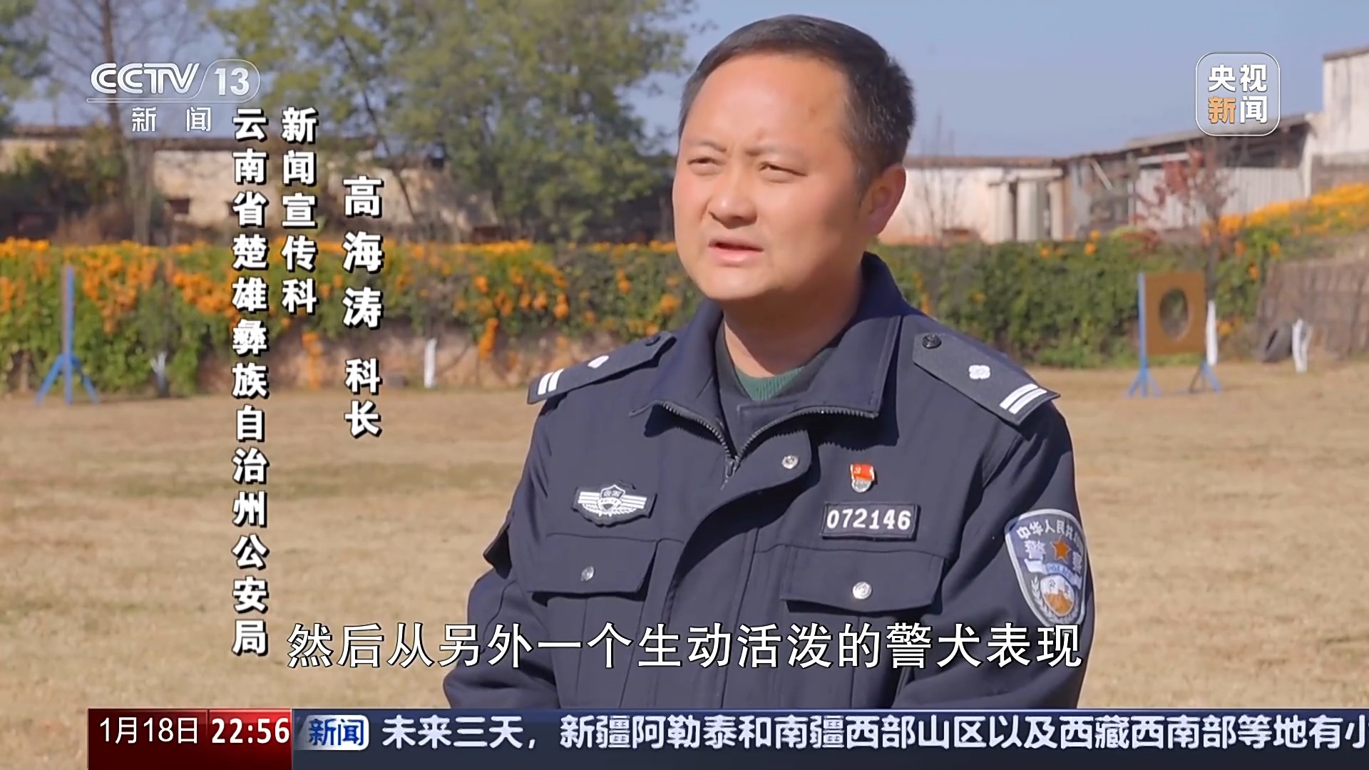 云南省楚雄彝族自治州公安局新闻宣传科科长 高海涛:之前也没想到在网上会引发这么大的一个舆论的讨论。我们也看得出来,大家对这个警犬的工作还是非常感兴趣,就是说颠覆了大家可能是对警犬、对警队的一些刻板印象。然后从另外一个生动活泼的警犬的表现,让大家对我们警队的整个印象有另外一方面的认识。