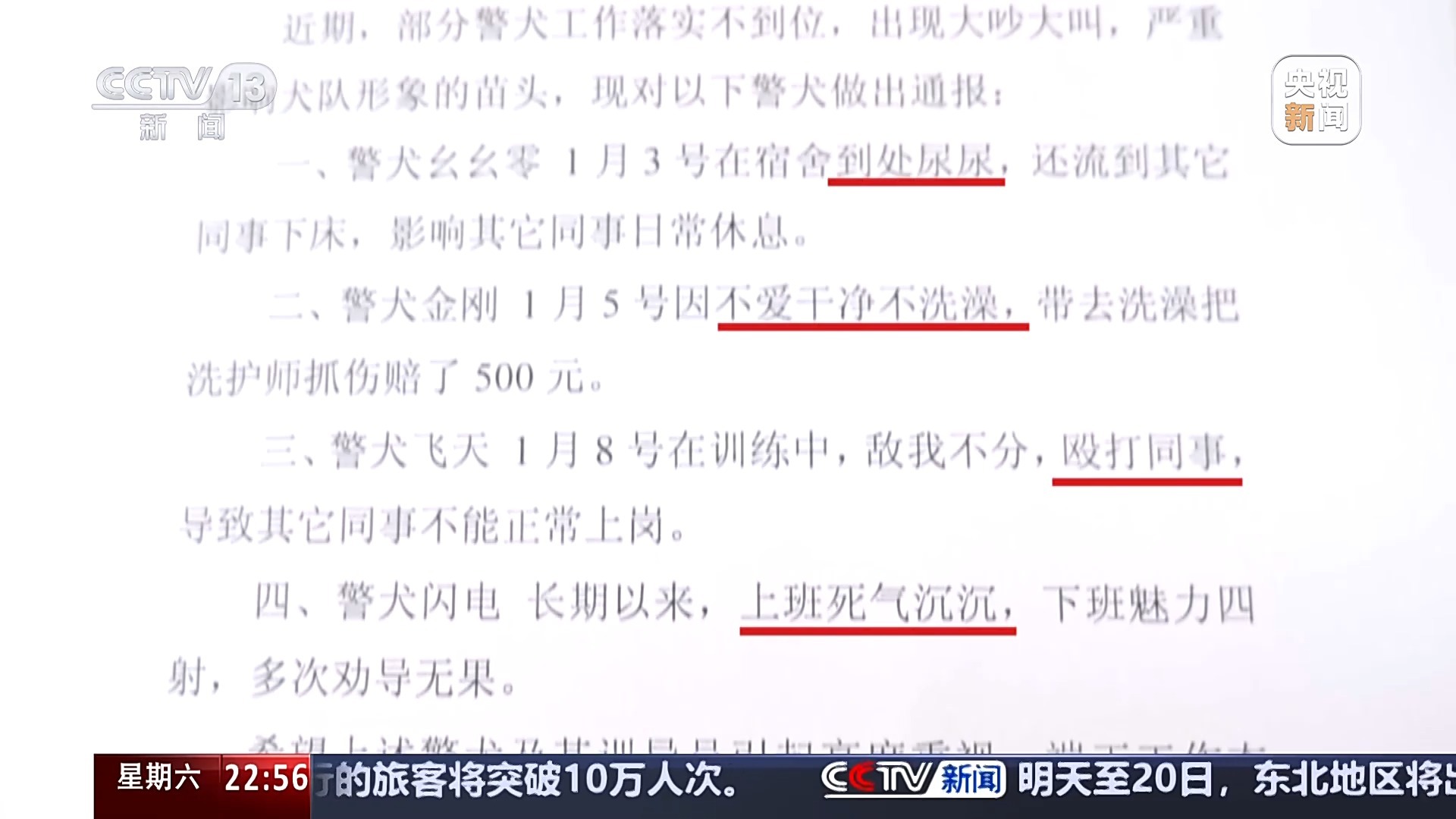 在训练基地中,不同犬种具有不同的特长和本领,在训练上也有会不同的训练课目和侧重点。因此这样的通报以往就长期在训练基地执行着,就是为了提醒驯导员,警犬在工作状态之外暴露出的成长问题,需要及时干预。