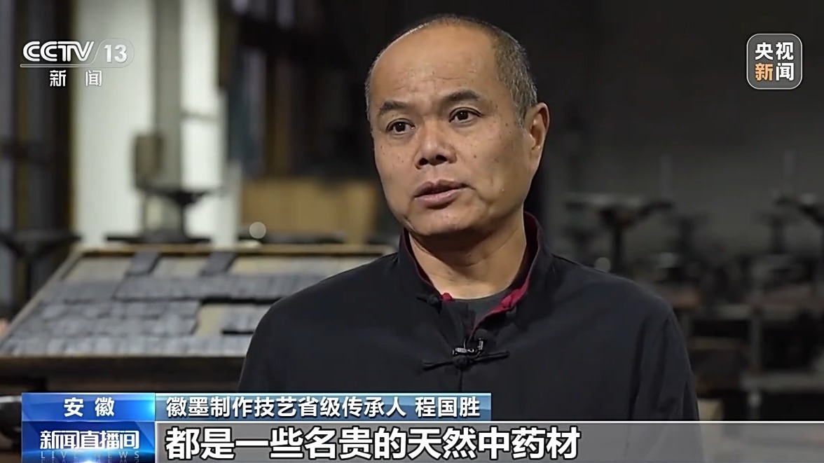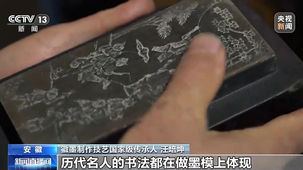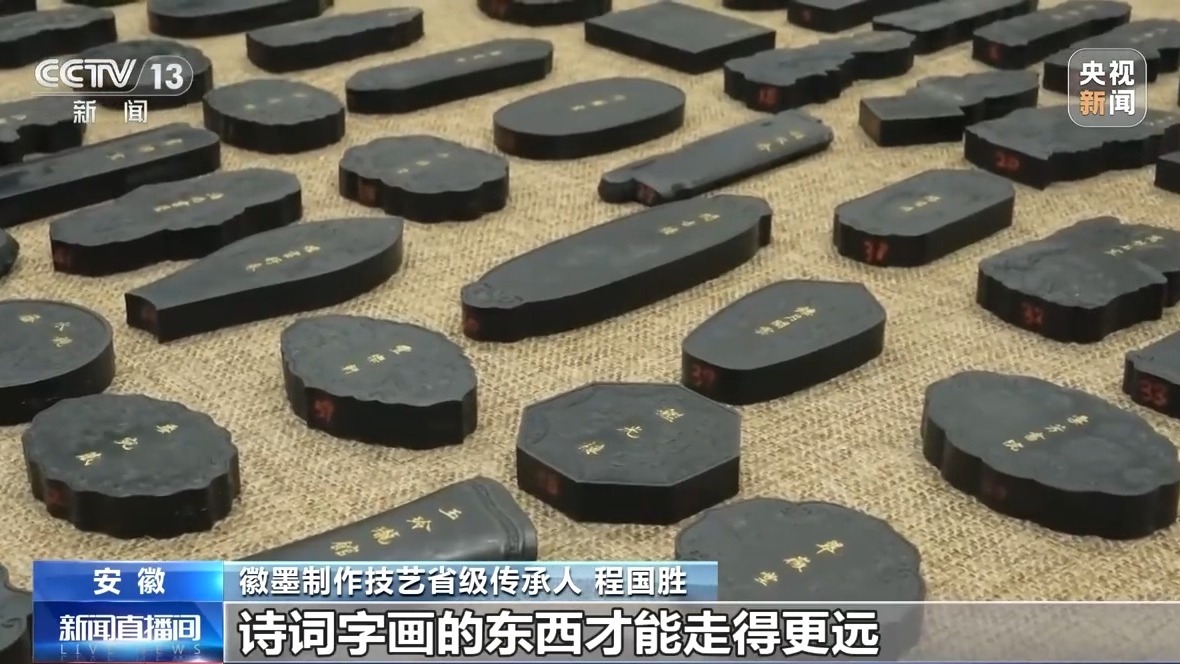 徽墨制作技艺省级传承人 程国胜:包括一些突破传统造型的、突破传统方式的,我们都有尝试。最终能传下去,能走得更远,还是以文化历史背景的这些诗词字画的东西才能走得更远。