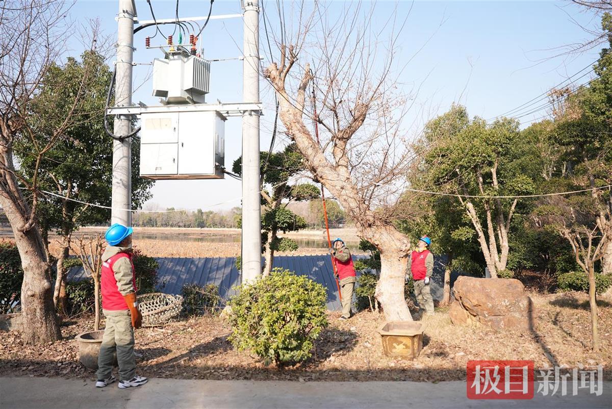 正在现场带队进行“双优四零”服务行动的国网武汉市蔡甸区供电公司玉贤供电所主任助理李威介绍,春节前,供电部门对辖区重要年货生产企业进行特巡,发现莲藕基地的一台变压器存在树障隐患,“今天我们对这处树障进行处理,并对企业车间的内部线路、接点处、设备运行情况等进行用电检查,确保春节期间企业生产的安全稳定供电。”
