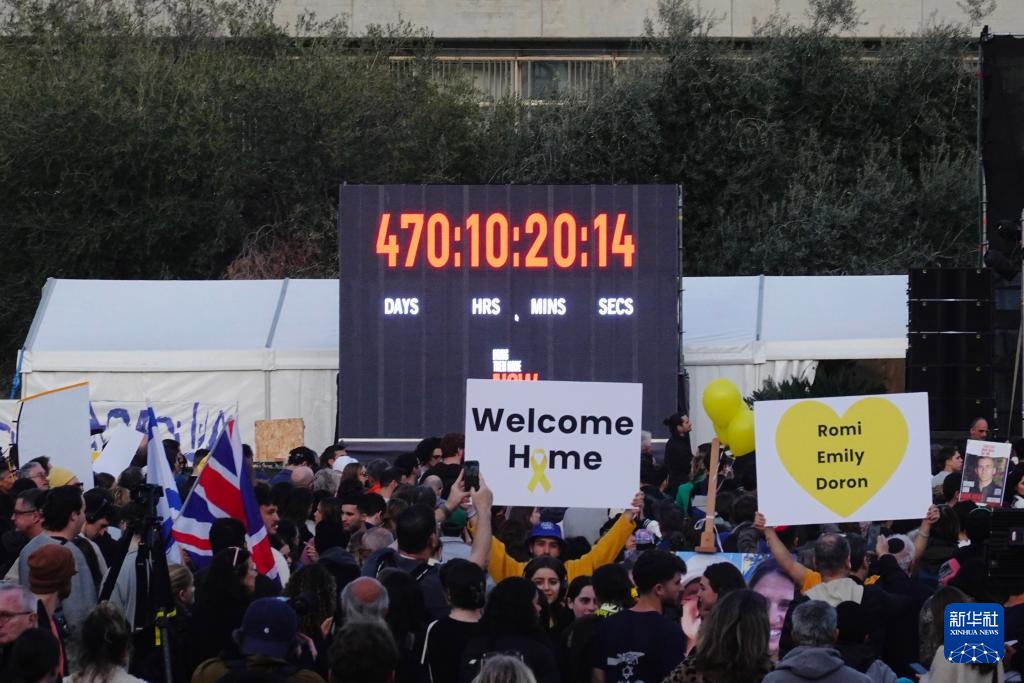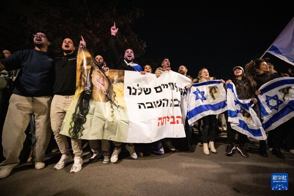 1月19日,人们在以色列特拉维夫的一座广场集会,欢迎3名以色列人被释放回国。新华社记者 王卓伦 摄