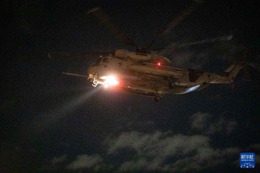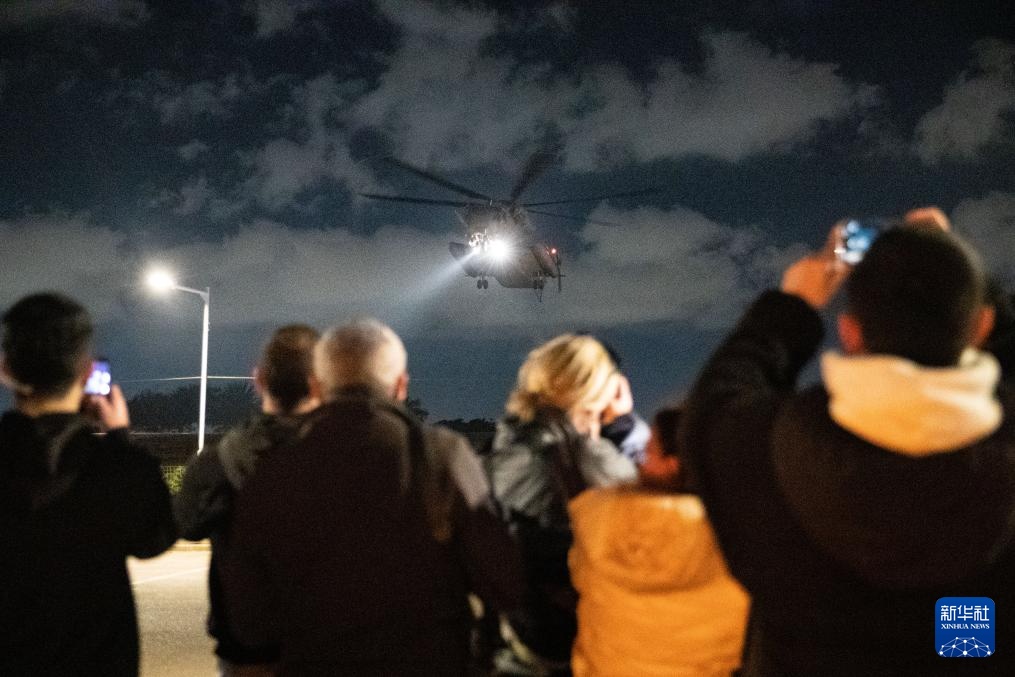 1月19日,搭载获释以色列人的直升机抵达以色列拉马特甘的一所医院附近。新华社记者 陈君清 摄