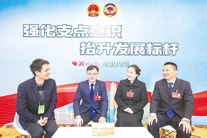 1月18日,省人大代表周冰(左二)、省人大代表周思夷(右二)、省政协委员李华成(右一)做客湖北日报全媒体访谈。 (湖北日报全媒记者 何宇欣 摄)