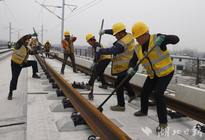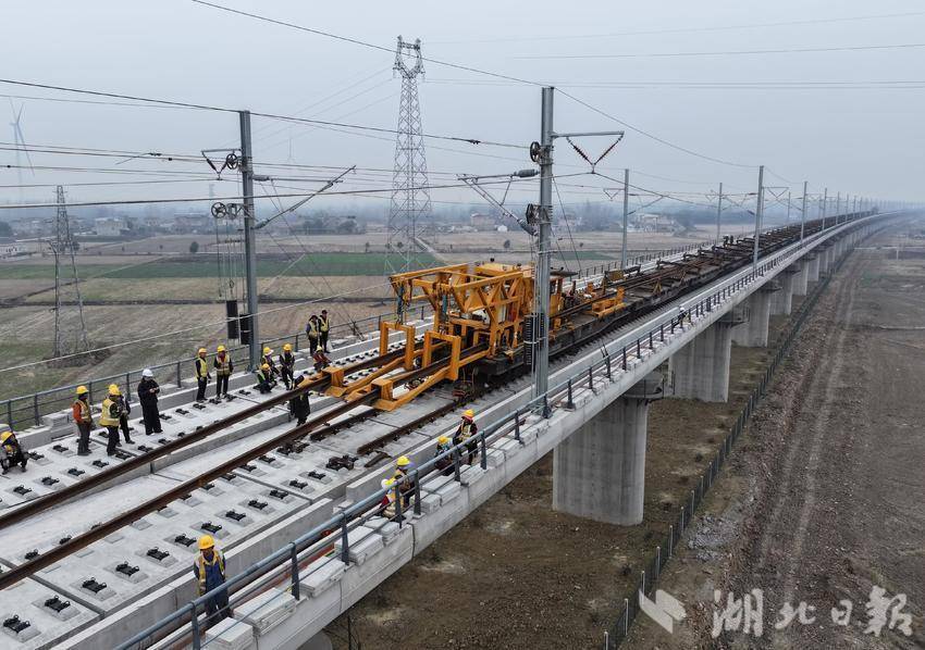 长轨运输车将钢轨送至指定位置,牵引车再将钢轨铺在道床上,工人们协同配合,装夹板、上扣件,一气呵成……1月19日从天门市铁路办获悉,经过紧张施工,沪渝蓉高铁天门段正线钢轨已铺设完成。
