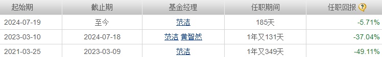 范洁从前海开源公共卫生股票基金成立时就开始管理该基金,到2023年3月份时黄智然与其共同管理,但1年多后黄智然离任,该基金再次回归范洁独自管理。不过可惜的是,无论哪个阶段,其任职回报始终不佳。