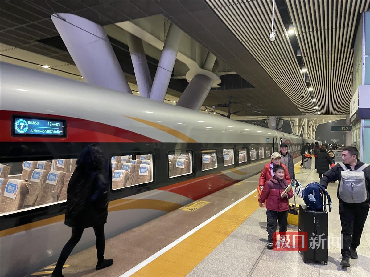 G4854次列车20日19:50从深圳北始发,途经广州南、清远、韶关等站,共有超千名旅客抵达武汉站。