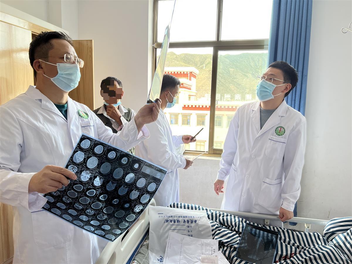 2022年7月底,距离上次从西藏返汉仅一个多月,邱波又和另外3名同事前往昌都市洛隆县。前一次的援藏经历让邱波积累了高原手术救治经验,7月26日抵达洛隆县后,他和同事们经过简单休整,便组团到该县人民医院外科病房对即将进行手术的患者进行会诊查看,制定相应手术方案。