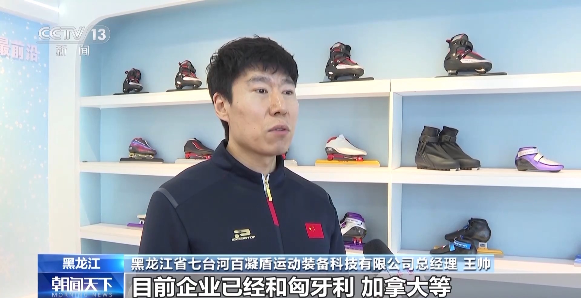 黑龙江省七台河百凝盾运动装备科技有限公司总经理 王帅:目前企业已经和匈牙利、加拿大等多个国家达成合作关系,我们今年的订单预计同比去年增加10%左右。