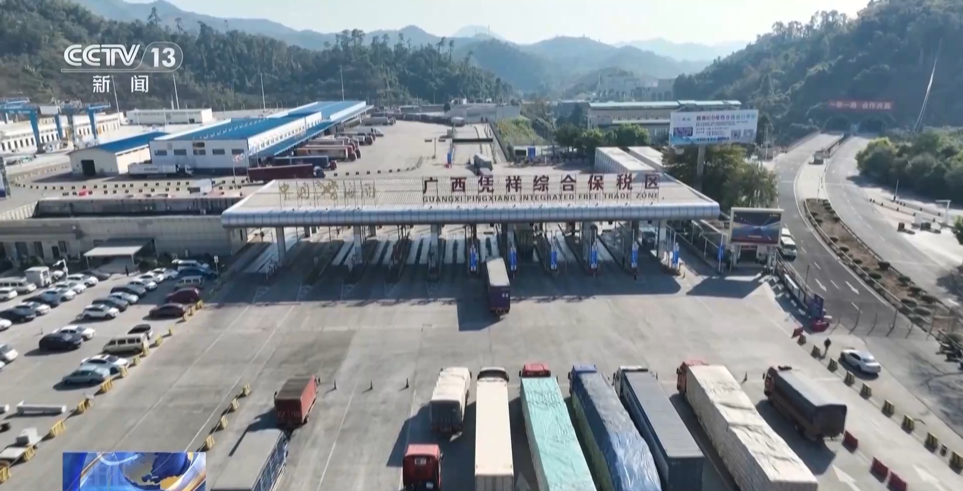 友谊关海关物流监控科关员 陆春蓉:最近红灯笼等成为了出口爆款,火龙果、菠萝蜜等“年货”水果正在争相进口。主流货物机电产品出口量也在增长。