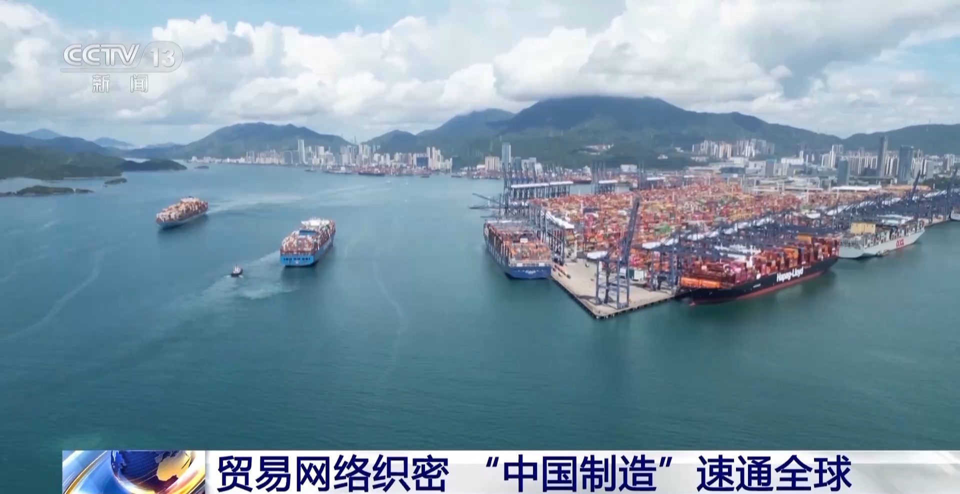 中国通往世界的海上贸易网络也忙碌起来。在深圳盐田港,一艘全球最大体量的超大型集装箱船,正准备启航。这艘货轮满载了来自中国的电子消费品和日用品,将驶向英国。