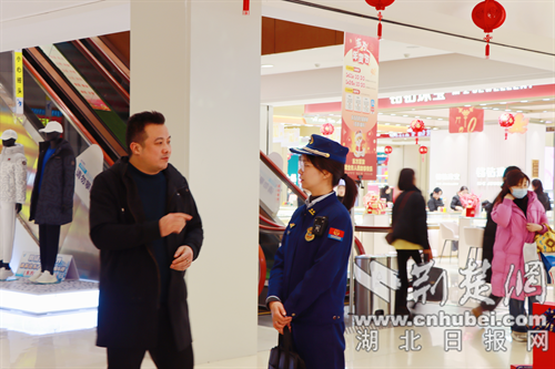 消防监督员叮嘱商场负责人做好春节期间消防安全管理工作。通讯员 供图