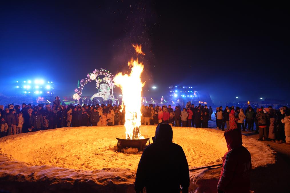 Visitors play at the bonfire party in the rice paddy theme park in Shenyang, northeast China's Liaoning Province, Jan. 12, 2025. (Xinhua/Li Gang)