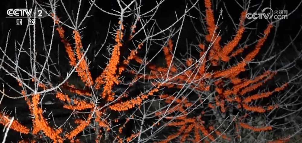 每天凌晨5点,新疆白杨市的万亩沙棘种植基地就开始忙碌起来,果农们戴着头灯,在寒夜中开始采收沙棘。