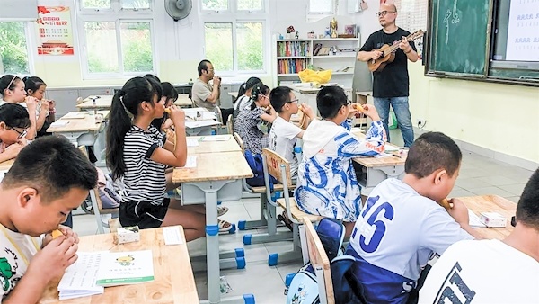 在教学的时候,他发现学生都喜欢音乐,但是不喜欢音乐课,因为课本上的东西太死板了,“我就在教学时,把生活中好玩的这种玩音乐的方式,引进了课堂。”
