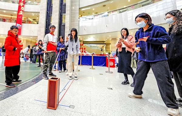 玩投壶游戏赢省图文创礼物