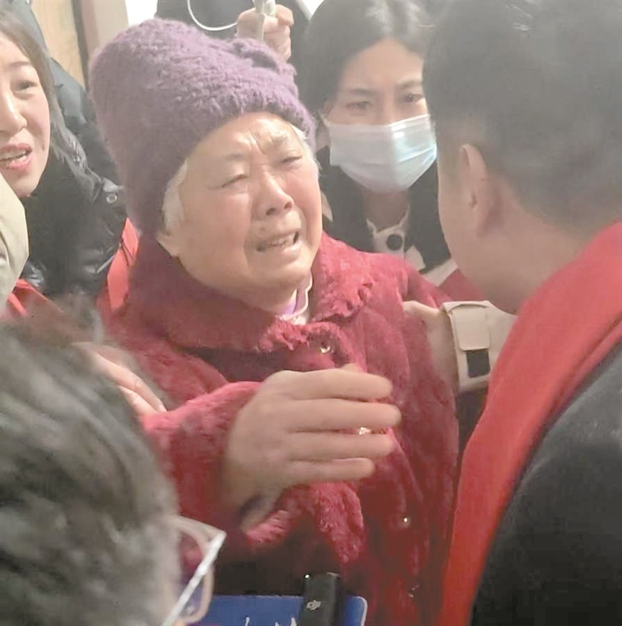 刘婆婆亲手给儿子穿上她买的鹅绒服,说:“你有妈妈了,你现在有妈妈疼了。谢谢大家帮我找到了儿子……”亲友劝她不要太激动,但她仍然抑制不住自己的情绪。