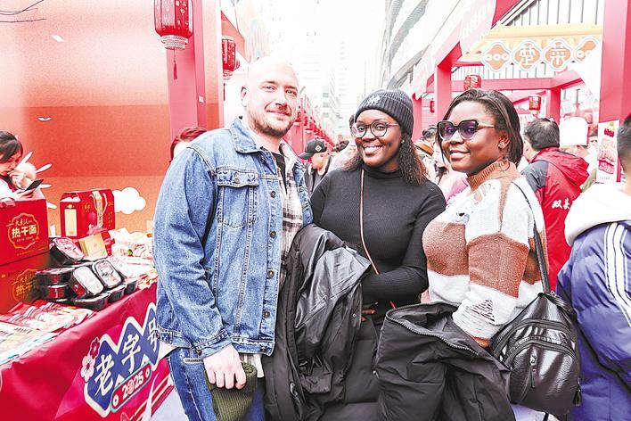 外国友人打卡“年在荆楚 巳巳如意”湖北新春消费季国潮好物市集。(省商务厅供图)