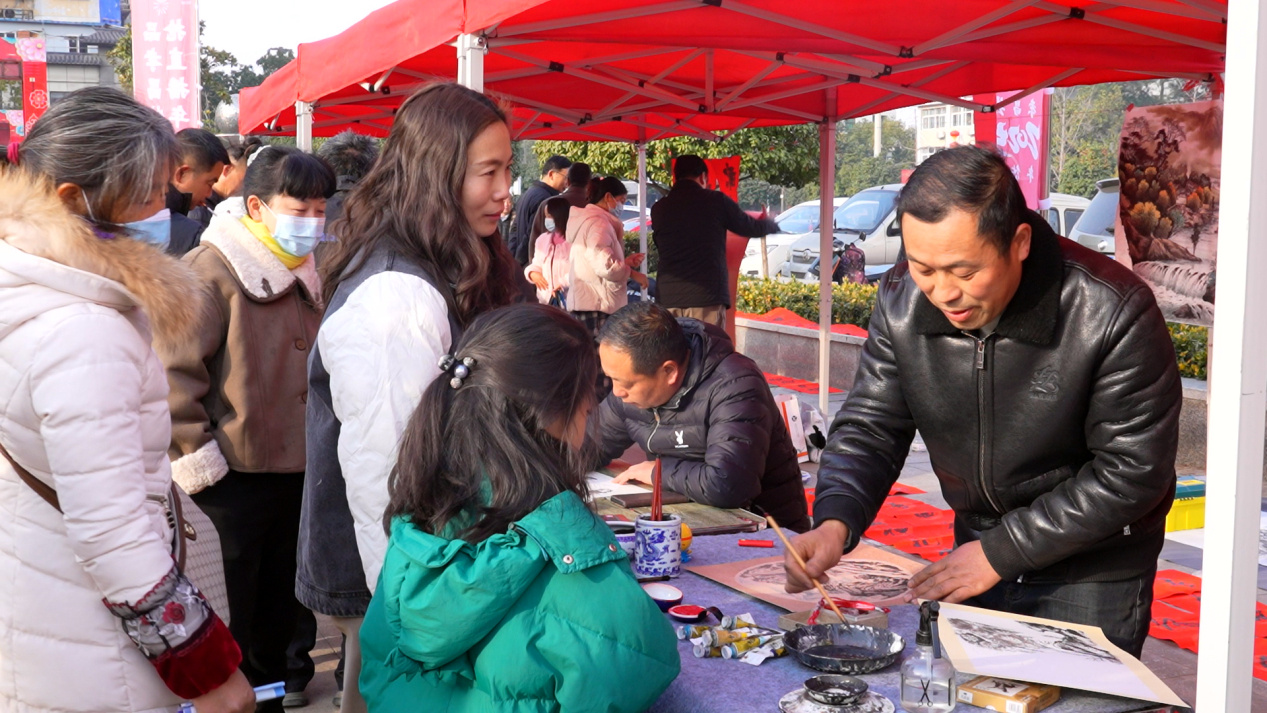 “带孩子来集市逛一逛,感受一下这浓浓的年味。没想到领了一幅书画,这书画画的蛮好的,今天感觉收获满满的,挺开心的。”市民刘林林说。