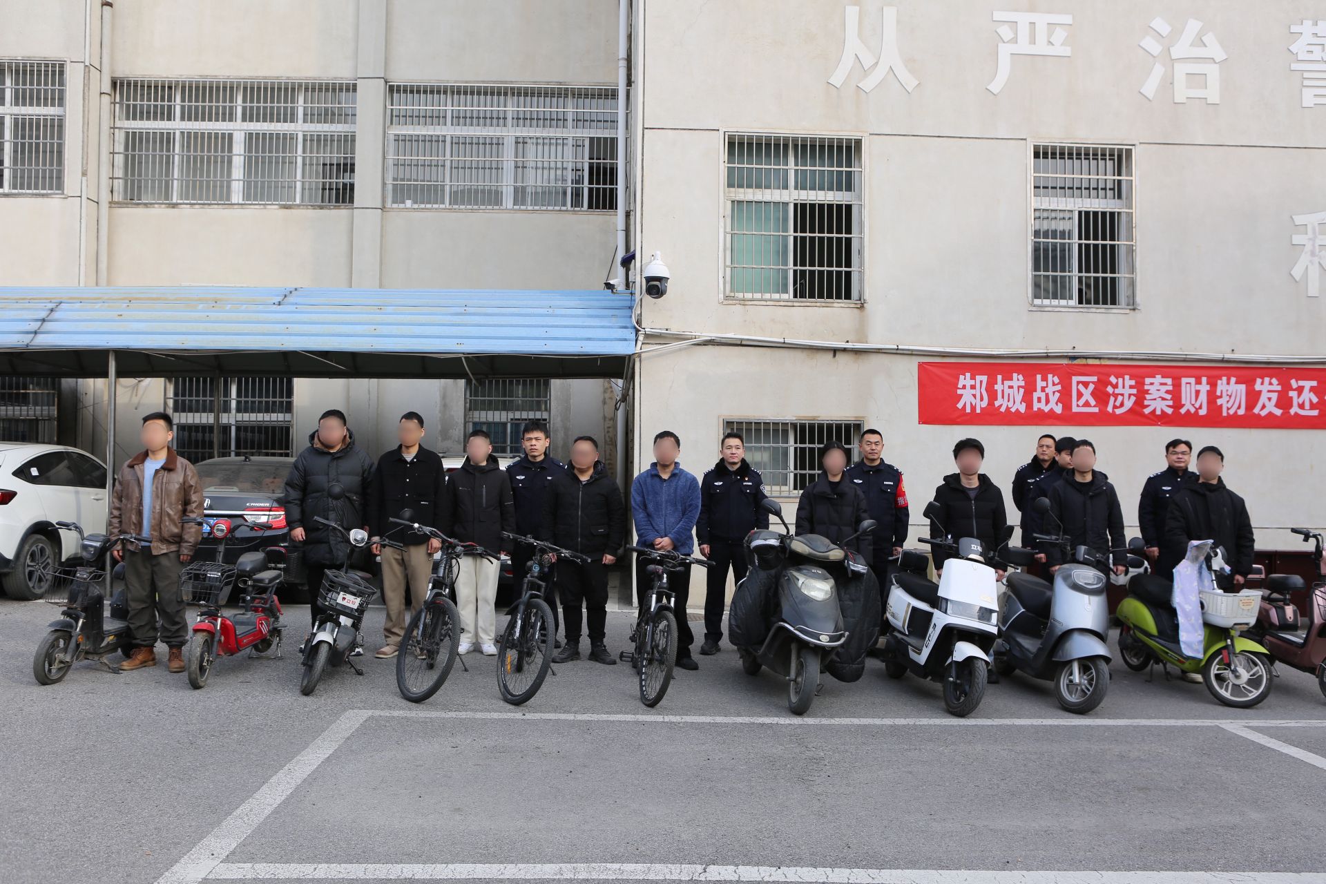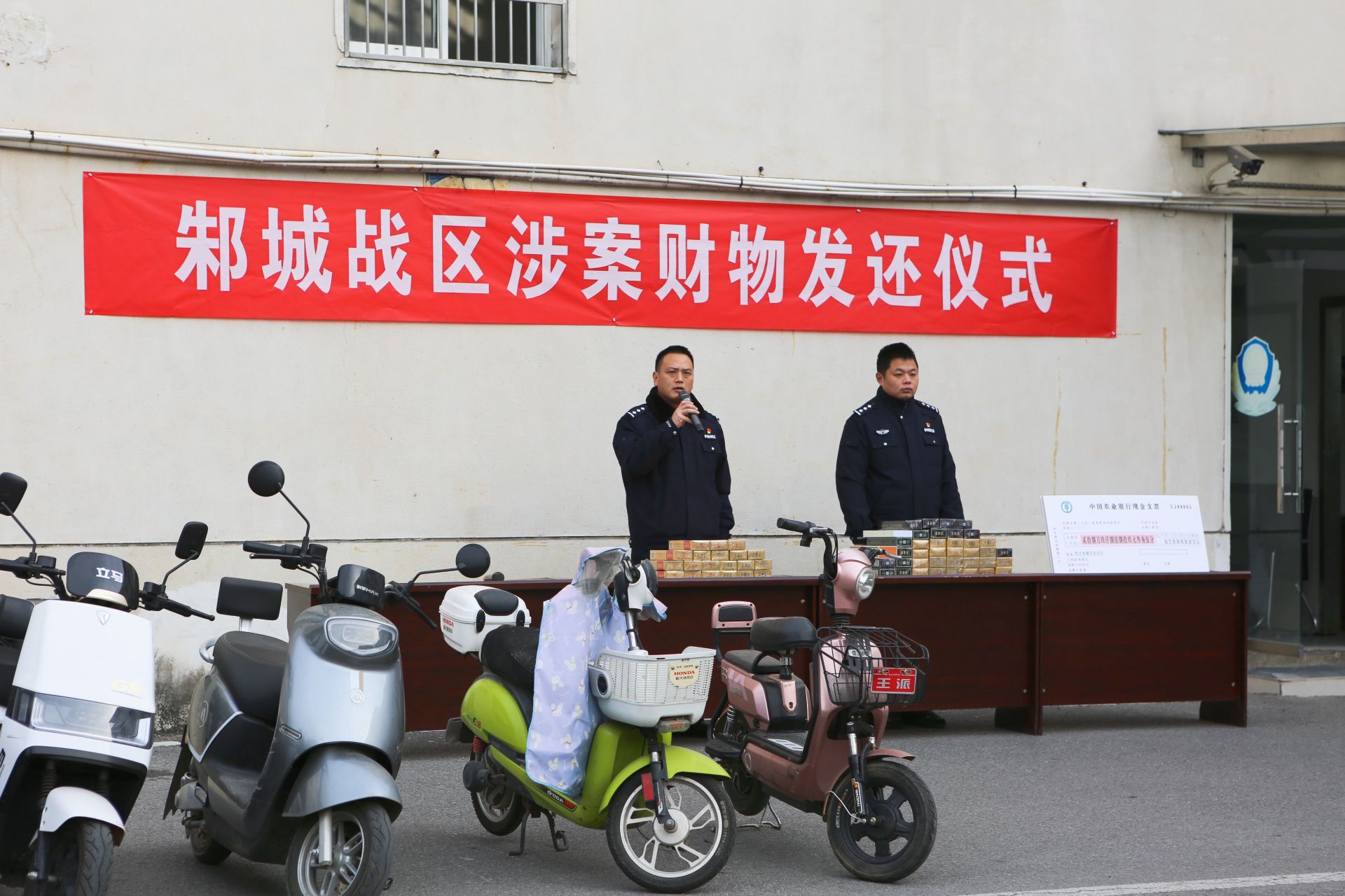 尽管天气严寒,发还仪式现场气氛却十分热烈。分局刑侦大队、反诈中心和邾城派出所民警依次将50万余元的涉诈资金、11辆被盗电动车、自行车,以及其他价值5万余元的被盗财物发还给受害群众。财物失而复得,大家的激动和喜悦溢于言表。