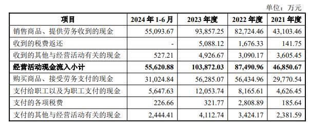 上述各期公司销售商品、提供劳务收到的现金分别为43,103.46万元、82,724.46万元、93,857.25万元、55,093.67万元。