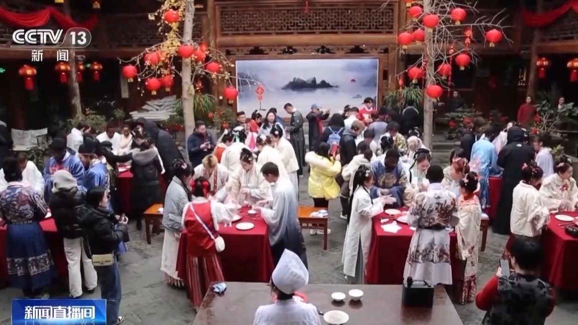 在首个“非遗版”春节来临之际,千年古城四川阆中张灯结彩、热闹非凡,一系列春节文化活动迎来了众多中外游客,大家在这里共同感受中国春节的年味儿和温暖。