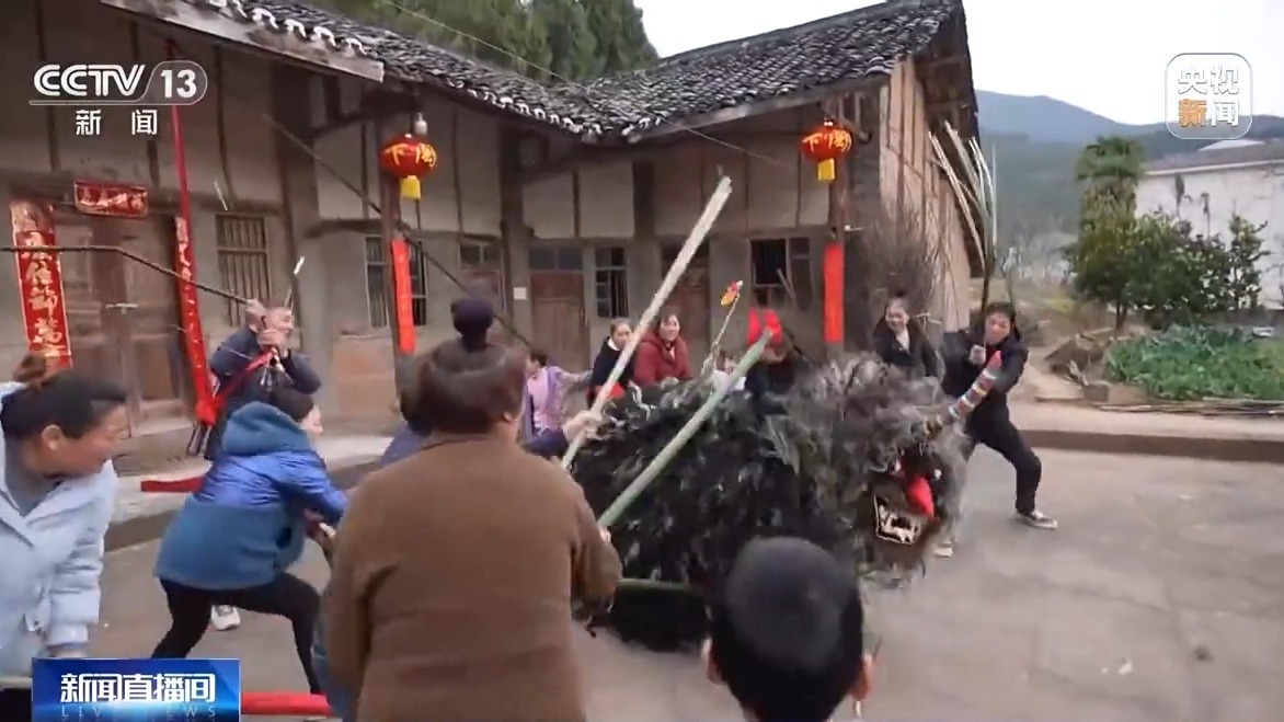 顾名思义,这个民俗节目就叫赶年,它生动再现了古时候年兽来袭时,男女老少手持火把和农具、敲打锅碗瓢盆、燃放烟花爆竹驱赶年兽的场景,充满了浓浓的年味儿。