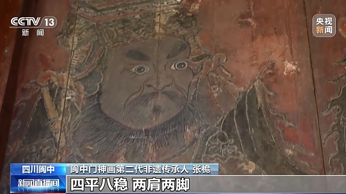 阆中门神画第二代非遗传承人 张桅:我们画门神有一个讲究,就是说一定要把武门神画得越凶越好。四平八稳,两肩两脚,要站得稳。