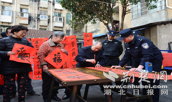 荆楚网(湖北日报网)讯(通讯员 姚寅)新春佳节来临之际,为传递京山公安对广大群众的新春祝福,弘扬中华优秀传统文化,1月20日,京山市公安局新市派出所廖承枫警务室联合承枫义警及社区志愿者,一同走进三角洲社区,为社区居民写春联、送祝福,为春节增添温暖“警”色。