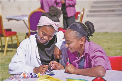 在厄立特里亚不久前举办的第六届中国风筝文化节上,当地小学生体验风筝制作。