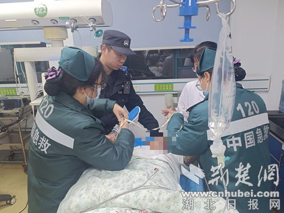 紧急救治,脱离危险。方成辉见状立即拨打120急救电话,合力将男子抬上救护车送往荆门市中医院急诊科进行救治。幸运的是,经过及时抢救男子终于脱离了生命危险,但情绪依然激动强烈要求出院。在征求医生同意后,方成辉将男子带回龙泉派出所进行进一步的安抚和劝解。