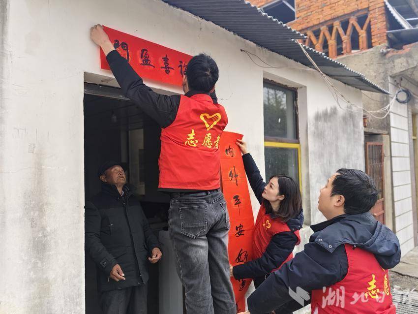 志愿者们主动为周爹爹打扫房屋、张贴春联和挂“福”字。他们分工合作,提前为周爹爹营造出温馨、喜庆、祥和的新年氛围。