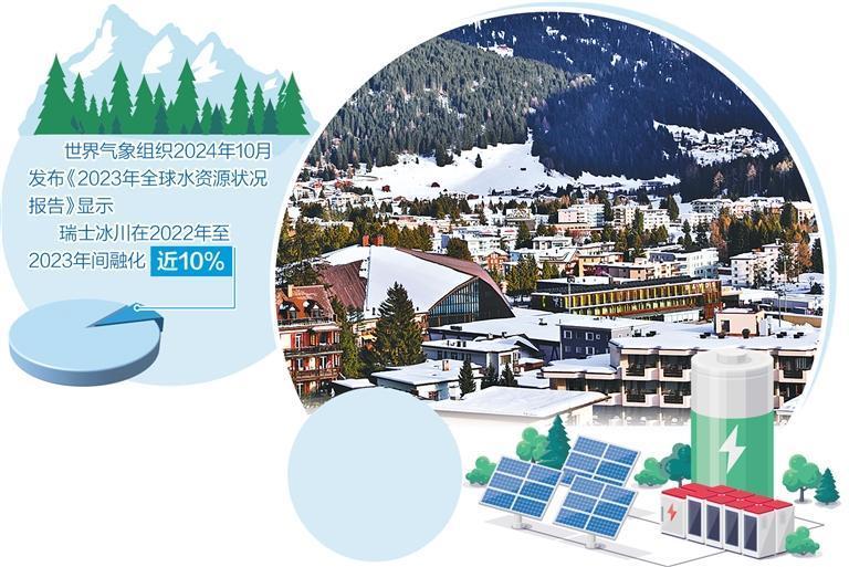 1月的瑞士达沃斯小镇,静谧的白色依然是主色调,但不论是世界经济论坛的组织者还是前来参会的常客,普遍反映今年的冰雪与往年相比逊色不少。冰雪景观褪色的背后是全球气候变化——世界气象组织2024年10月发布的《2023年全球水资源状况报告》显示,受全球变暖影响,欧洲阿尔卑斯山脉冰川正在严重融化,其中瑞士的冰川在2022年至2023年间融化了将近10%。
