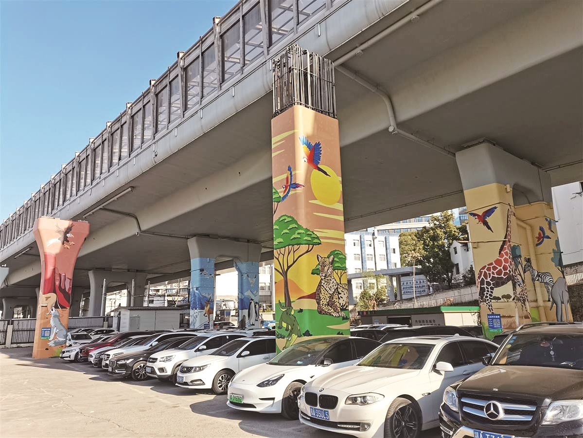 这座焕新的公共停车场位于武汉市汉阳区的武汉动物园正门对面,由武汉城投集团所属城运集团停车场公司组织专业艺术团队精心设计,桥墩彩绘作业于上月底正式完成。连日来,这一贴心举动赢得了广大车主称赞。