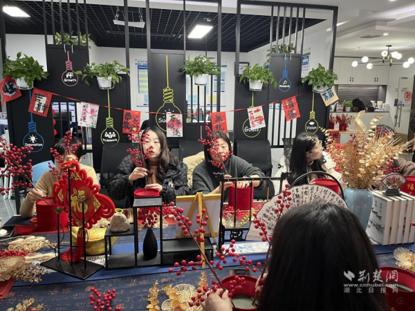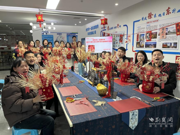 荆楚网(湖北日报网)讯(通讯员 张柏 侯本瑞)1月24日上午,武昌区杨园街道在武汉数创大厦举办以“数美滨江 福桶纳瑞”为主题的年宵花福桶制作活动,30余名楼宇企业职工欢聚一堂,一同制作年宵花福桶,喜迎新春。
