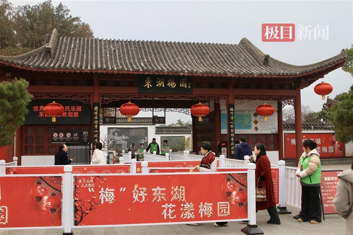 走进东湖梅园,满园梅花绽放,人文景观依次排开,如同一幅浓墨重彩的美丽画卷。800余亩的东湖梅园,种植梅花2万余株,梅花品种360余种。丰富的梅花品种,使这里成为游客们赏梅、探梅、摄梅的绝佳打卡地。不仅如此,梅园还打造独特丰富的人文景观“梅园新十景”:“雪海寻香”“梅花观止”“雾里探梅”“今古咏梅”“梦湖画舸”“梅台映雪”“青梅煮酒”“墨池品梅”“梅妻鹤子”“梅影琴韵”,景点与自然美景交相辉映,构筑了这里独特的历史底蕴与人文特质,向游客展示它的秀美、内涵和博大。沿湖两侧的杉树穿上了“多巴胺”毛衣,打破了冬日的沉闷,让杉树显出别样生机。“穿”毛衣的杉树不仅是风景,更传递了温馨与温暖。随着人与自然和谐共生的文旅空间逐渐形成,东湖梅园被赋予更多旅游综合功能,使这里成为游客目之所及皆风景,且以诗意共远方的旅游目的地。
