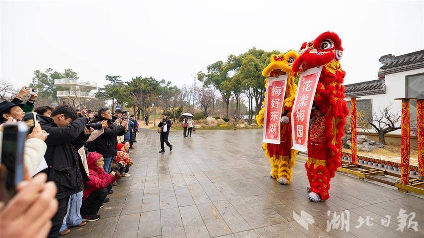 2025年1月24日,2025武汉东湖梅花展在东湖梅园正式开幕,800余亩的东湖梅园里2万余株、360余种梅花正陆续绽放。舞狮表演、汉服演员对诗、花间点茶、“梅好喜市”文创市集等丰富多彩的文旅活动将在园内轮番上演,陪伴市民游客度过祥和美好的新春佳节。(湖北日报全媒记者 何宇欣 通讯员 邹卉 摄)