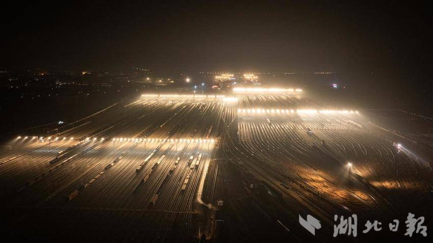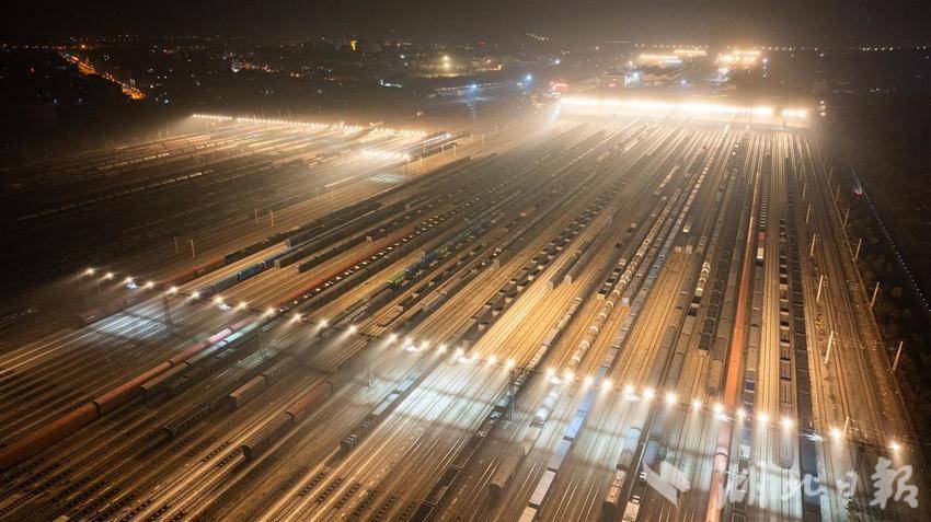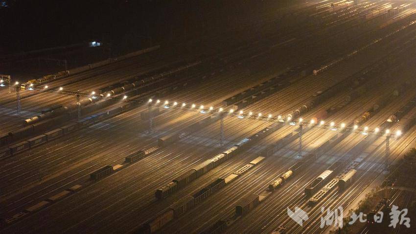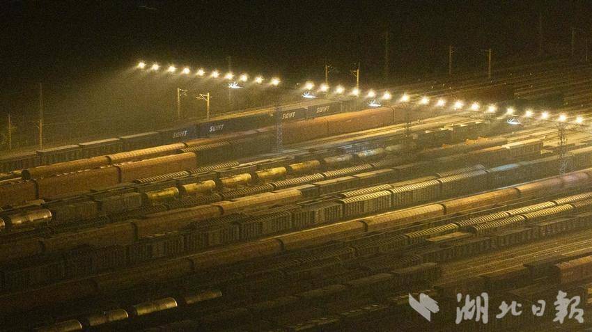 2025年1月20日晚,武汉北编组站内灯火通明,一列列货运列车在这里交会、解编、发往全国各地。武汉北编组站作为全国铁路网货物运输的重要枢纽之一,承担着电煤专列、中欧班列、铁水联运、铁海联运等重点运输任务。春运期间,每日有超过2万辆车在此集结、中转,宛如一个巨型的铁路“快递中转站”,将东南西北的物资“分拣”后送达全国各地,让春运期间货物运输不“堵车”。(湖北日报全媒记者 何宇欣 通讯员 王世炜 摄)