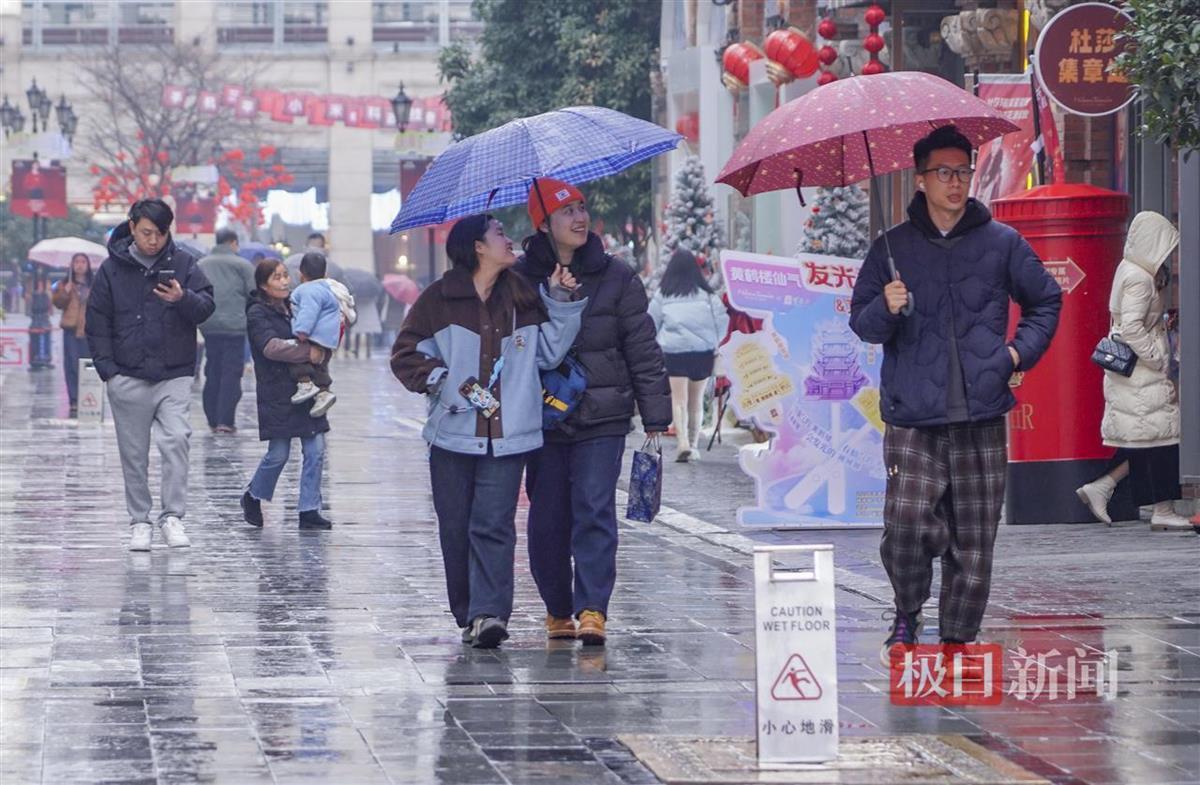 久违的雨水滋润武汉,降温让行人穿上了厚冬衣