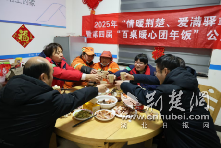 椐悉,临近春节,中国石化襄阳石油开启了“情暖荆楚 爱满驿站”暨第四届“百桌团年饭”公益活动,分别在春运返乡客流集中的高速公路服务区、国道沿线、城郊结合站等7座加能站,邀请坚守岗位的货车司机、网约车司机、环卫工人、快递小哥等劳动者共吃团年饭,共话新年愿景与梦想。并同步在设有“爱心驿站”的加能站的泵岛、便利店门口等安全区域设置春运爱心服务台,为春运返乡人群、卡车司机、户外工作者等群体,提供免费药品、热水、简易维修工具、道路指引、便民用品等“10+X”免费基础服务,向环卫工人、外卖骑手、快递小哥等群体,赠送中国红春节礼包等,给冬日里户外劳动者送上一份新春佳节祝福。