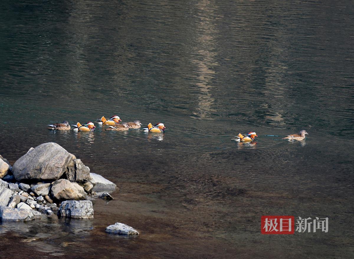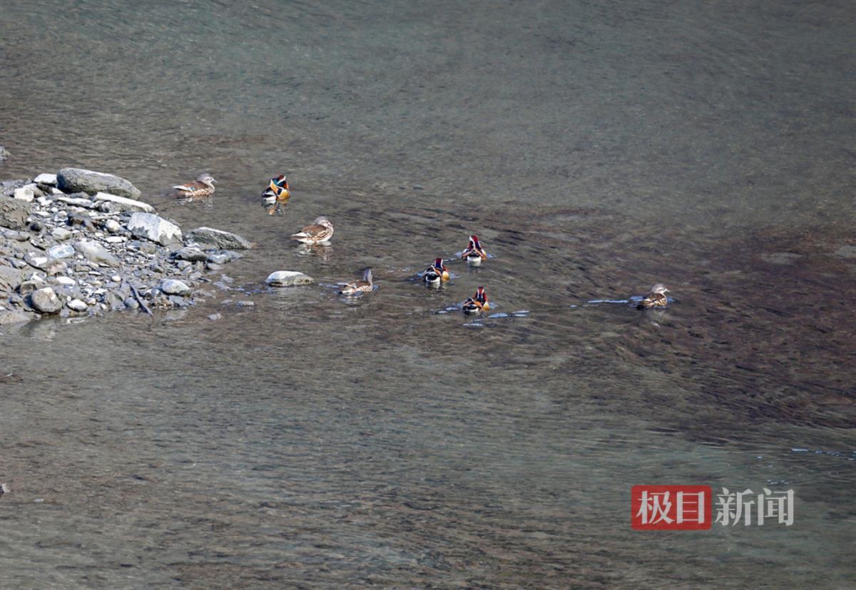 1月26日,湖北竹山县林业局观鸟爱好者惊喜地拍摄到四对鸳鸯在该县堵河水域中嬉戏的精彩画面。