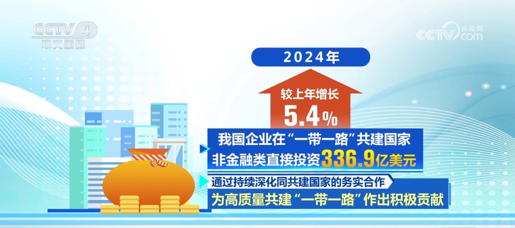 2024年,对外承包工程完成营业额1659.7亿美元,较上年增长3.1%。2024年派出各类劳务人员40.9万人,较上年增长17.9%。我国企业在“一带一路”共建国家非金融类直接投资336.9亿美元,较上年增长5.4%,通过持续深化同共建国家的务实合作,为高质量共建“一带一路”作出积极贡献。