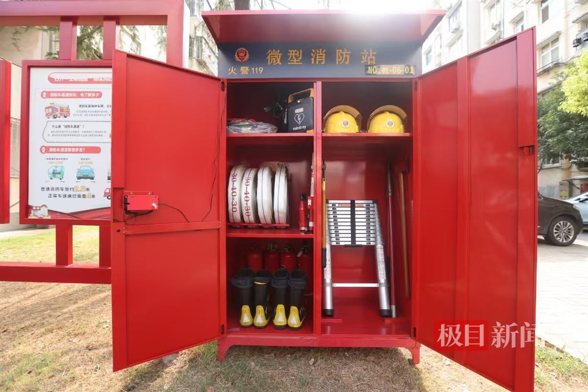 固定式微型消防站采用无人值守智能消防柜的模式,按照3分钟响应标准,占地不足1平方米,配置灭火器、消防水带、救援伸缩梯、AED等4类19种27件装备。紧急时刻,微型消防站队员及群众就近随用随取。