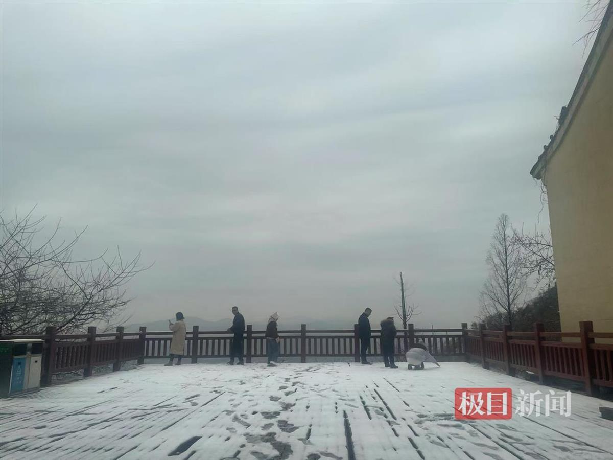同在武汉黄陂区,木兰山上有雪,而黄陂城区却没有,只因城区温度没下降到位,雪姑娘没法落脚。武汉的雪是“高山版”,很多游客去海拔较高的木兰山赏雪。
