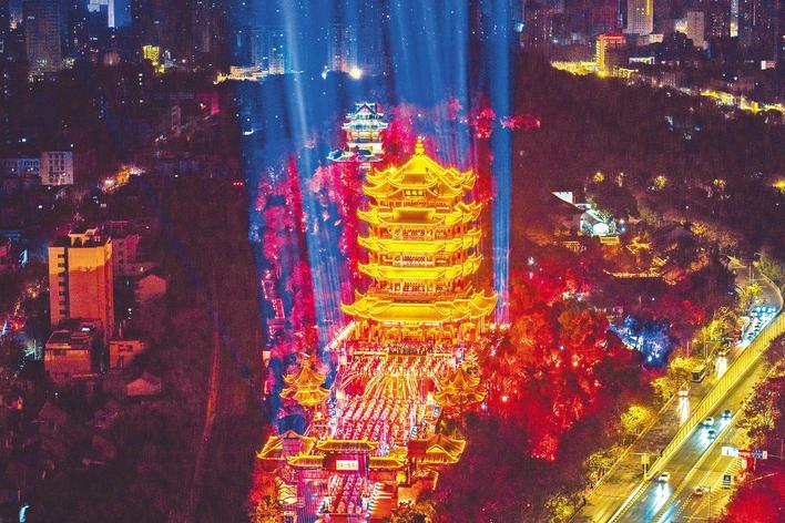 此次春晚武汉分会场的主舞台,就搭建在长江之畔、蛇山之上的黄鹤楼。