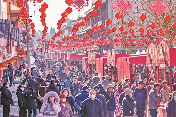 春节将至,市民忙着买春联;大街上,一盏盏红灯笼喜气洋洋;东西湖柏泉街庙会,人们精心挑选着年货,脸上笑意盈盈,三镇街头一派幸福祥和的景象。