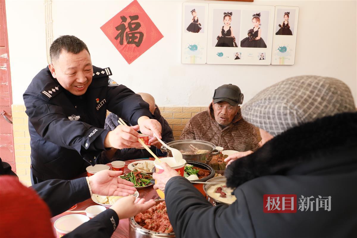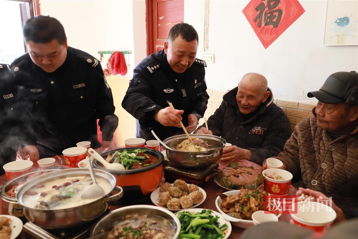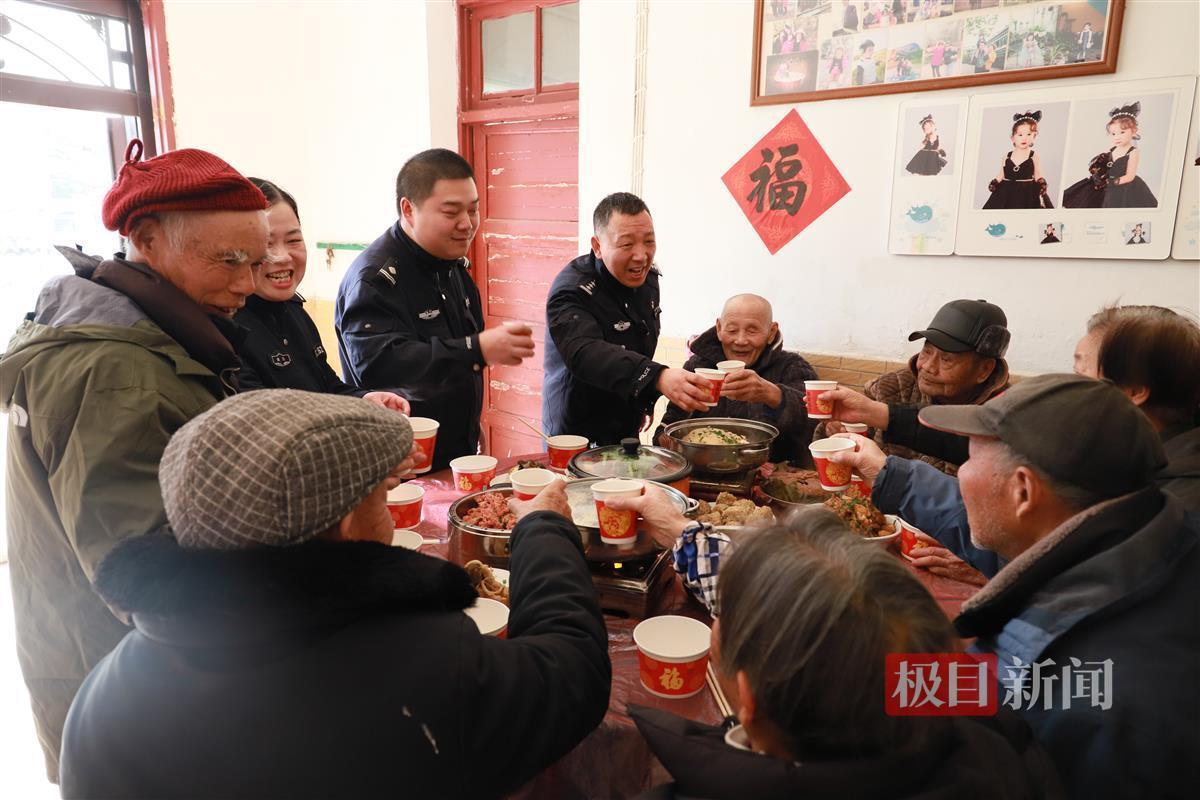 “马上过年啦!大家一起热热闹闹吃个年饭,祝你们身体健康常喜乐,日子越过越红火!”近日,武汉市公安局黄陂区分局腾龙派出所民警朱万春热情邀请黄花涝村6名独居老人,在黄花涝村驻村辅警王雄飞家中包饺子、吃年饭、贺新春。